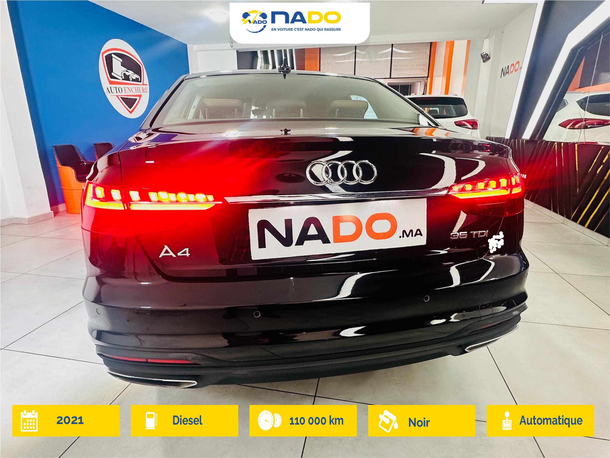 Ce AUDI A4 d'occasion, d’origine WW au Maroc modèle 2021, est une excellente opportunité Première main à saisir. Arborant une élégante finition de couleur Noir, ce berline affiche 110000 km au compteur. Il est équipé d'une boîte de vitesses automatique et d'une puissance fiscale de 8 CV. Ce véhicule 4 portes est certifié par Nado , Disponible à Casablanca-Jnane Californie, il est proposé au prix de 295000 DH.