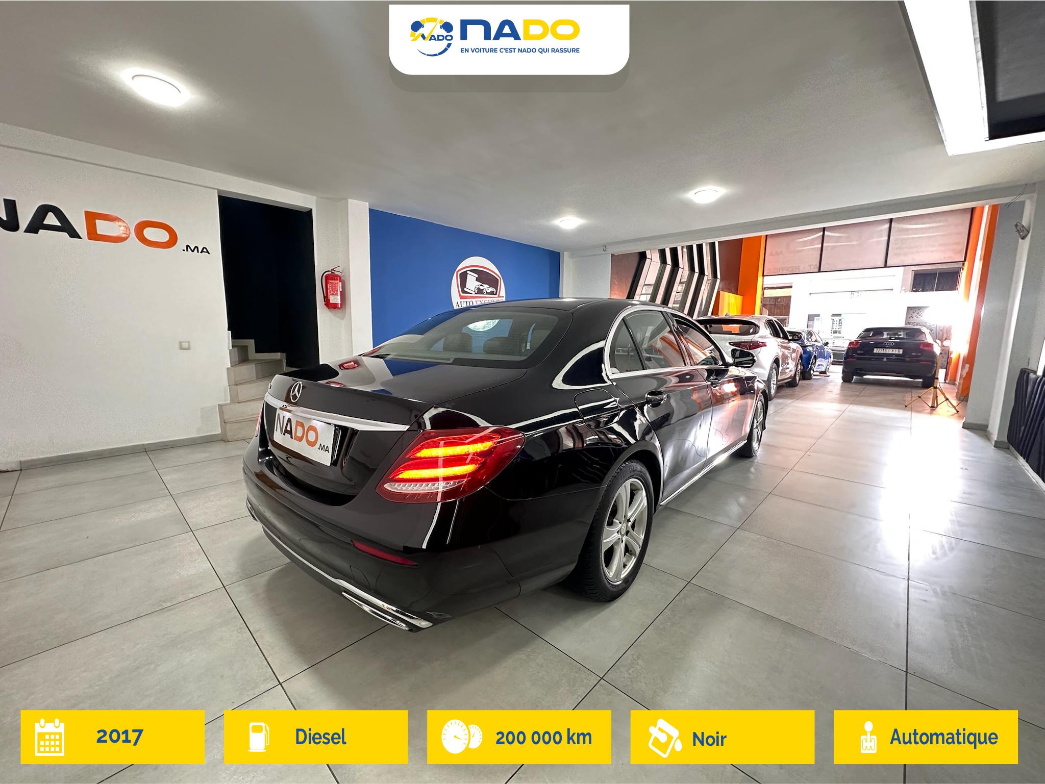Ce MERCEDES Classe E d'occasion, d’origine WW au Maroc modèle 2017, est une excellente opportunité à saisir. Arborant une élégante finition de couleur Noir, ce berline affiche 200000 km au compteur. Il est équipé d'une boîte de vitesses automatique et d'une puissance fiscale de 8 CV. Ce véhicule 5 portes est certifié par Nado , Disponible à Casablanca-Jnane Californie, il est proposé au prix de 255000 DH.